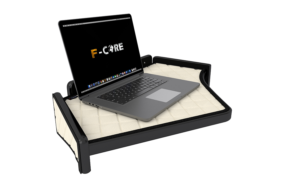 Prostřední police prostřední (Řada Elegance) pro vozidla FORD F-MAX (2018-) byla zhotovena z jakostní dřevěné desky zajišťující životnost a estetický vzhled. Výrobek je připevněn na palubní desce pomocí silného suchého zipu, díky tomu je nový plochý povrch stabilní a je možné na něj položit různé předměty; nejčastěji notebook nebo televizi. Krabice obsahuje návod s montážní sadou. Výrobky této řady se vyznačují materiály nejvyšší kvality, vysokou pečlivostí provedení a novátorskými technologickými řešeními. Deska police byla pokryta prošívanou syntetickou kůží. Přední panel je vybavený řadou LED diod osvětlujících desku police bílým směrovaným světlem. Toto řešení usnadňuje řidiči používání police během jízdy a na odpočívadlech v nočních hodinách. V horní levé části panelu se nachází otočný knoflík sloužící k lineárnímu nastavení intenzity světla. Řada NATIONAL je kompozicí sestávající z barev a specifických značek pro danou zemi. Je adresována především řidičům, kteří křižují tisíce kilometrů cest a dálnic, tráví spoustu hodin na zahraničních parkovištích a přejí si, aby vnitřek kabiny odrážel jejich vlastenecké hodnoty.