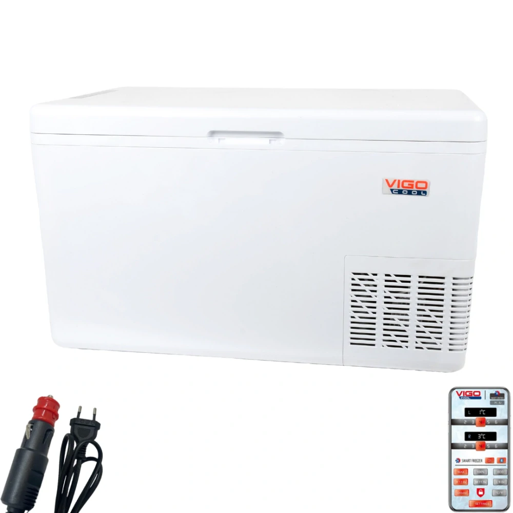 Autochladnička Vigo Cool s kapacitou 35 litrů bílé barvy je vybavena Bluetooth a ovládáním pomocí aplikace. Funguje na 12V, 24V i 230V, s ochranou baterie proti vybití. Teplotní rozsah od +20 °C do -20 °C zajišťuje optimální chlazení nebo mražení. Ideální pro cestování, kempování a dlouhé jízdy. Snadno ovladatelná a přenosná.