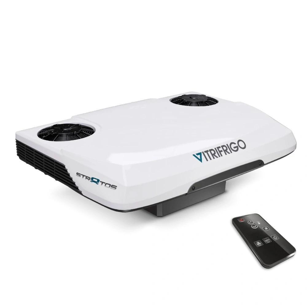 Nová střešní klimatizace STRATOS poskytuje řešení pro prakticky jakékoli průmyslové vozidlo. Navržen pro maximální účinnost a minimální spotřebu, je to nejlepší řešení pro veškeré požadavky na klimatizaci v kabině řidiče. Klimatizační jednotky Vitrifrigo jsou napájené přímo z baterie vozidla a zaručují dokonalý kompromis mezi úsporou energie a zlepšenými komfortními podmínkami, pokud jde o kvalitu vnitřní klimatizace, odvlhčování a emise zvuku. Její použití je jednoduché a flexibilní. Proudění vzduchu je dodáváno prostřednictvím individuálně nastavitelných větracích otvorů, které lze snadno ovládat pomocí integrovaného ovládacího panelu nebo dálkového ovladače.